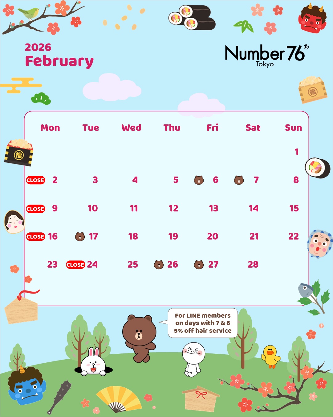 2月は、お友達ご紹介でお互い20%OFF!! ご紹介者(サロンメンバー)、ご紹介されたNumber76Tokyoに初めてご来店されるお友達、共に20%OFFになります!! 是非、この機会をご利用くださ...