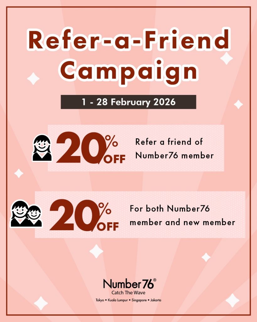 February only! Refer a friend and both you and your friend get 20% OFF! Both the referrer (salon member) and the friend visiting Number76Tokyo for the first time get 20% OFF!! Don't miss out on this chanc. ※Note: The referrer's full name is required. Please provide it when booking or inform our staff.
